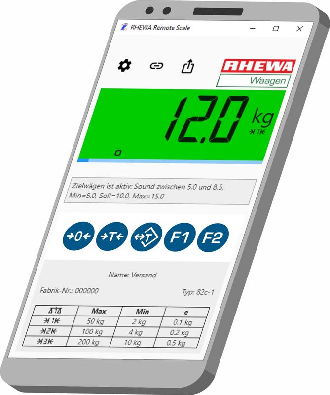 Durch eine individuell wählbare Benennung der Waage, der Anzeige des Gerätetyps und der Darstellung des Typenschilds ist stets gewährleistet, dass die gewünschte Waage angewählt wird. Voraussetzung für die Nutzung der innovativen Software sind lediglich eine Netzwerkschnittstelle am RHEWA-Auswertegerät und dass die Waage und das Anwendergerät in dasselbe Netzwerk eingebunden sind. Die Remote Scale App ist Android-, iOS- und windowsfähig.