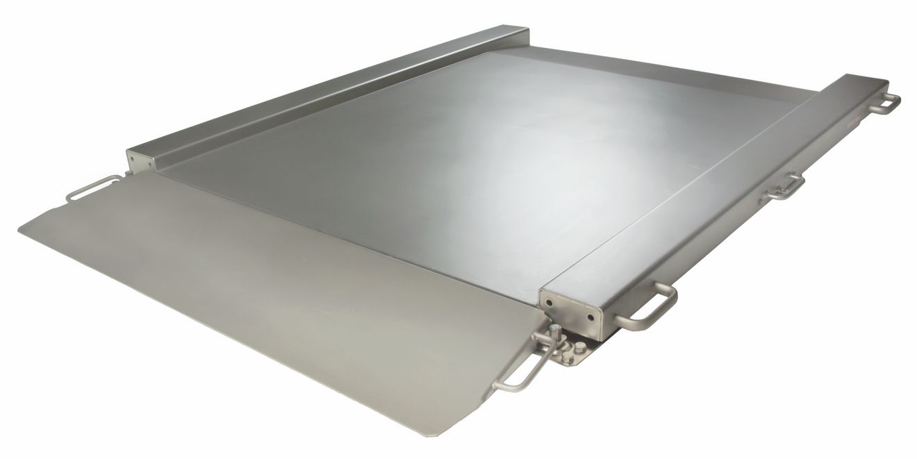 Stablna, wytrzymała i niezwykle płaska waga przejazdowa ze stali szlachetnej z obniżoną platformą wagową (wysokość przejazdowa tylko 40 mm) oraz wintegrowaną rampą najazdową dla łatwego wjazdu wózkiem transportowym, widłakowym itp.