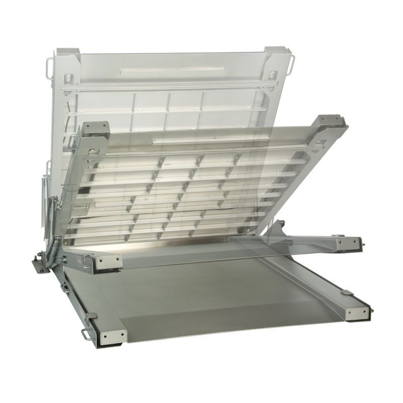 Konstruktion der Wägebrücke auf Basis der HACCP-Richtlinien. Die optionale Hebevorrichtung garantiert eine perfekte und vollständige Reinigung der Waage und des unter der Waage befindlichen Bodens.